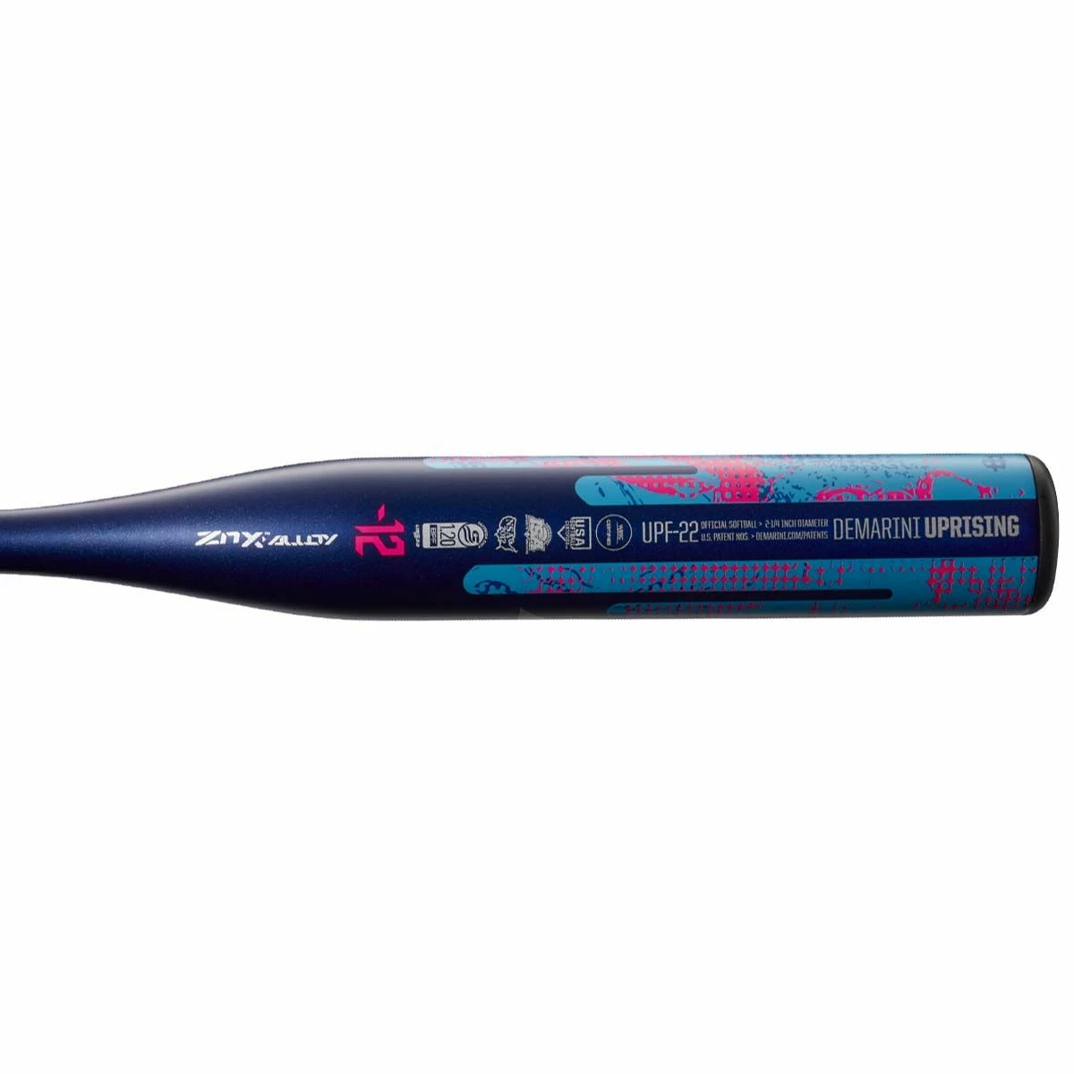 The DeMarini Uprising -12 oz. drop fastpitch softball bat is designed for younger players looking to make an impact with a light-swinging, high-performing bat. The Uprising features a DX1 Alloy barrel for great pop, long-lasting durability, and an easy swing. The one piece construction of Uprising gives the bat a stiff feel, and the Bid D end cap helps reduce vibration so young hitters can swing with confidence. The Uprising is certified by the USSSA 1.20 BPF, USA Softball, NSA, ISA and WBSC, and is backed by a 1-year limited manufacturer’s warranty.