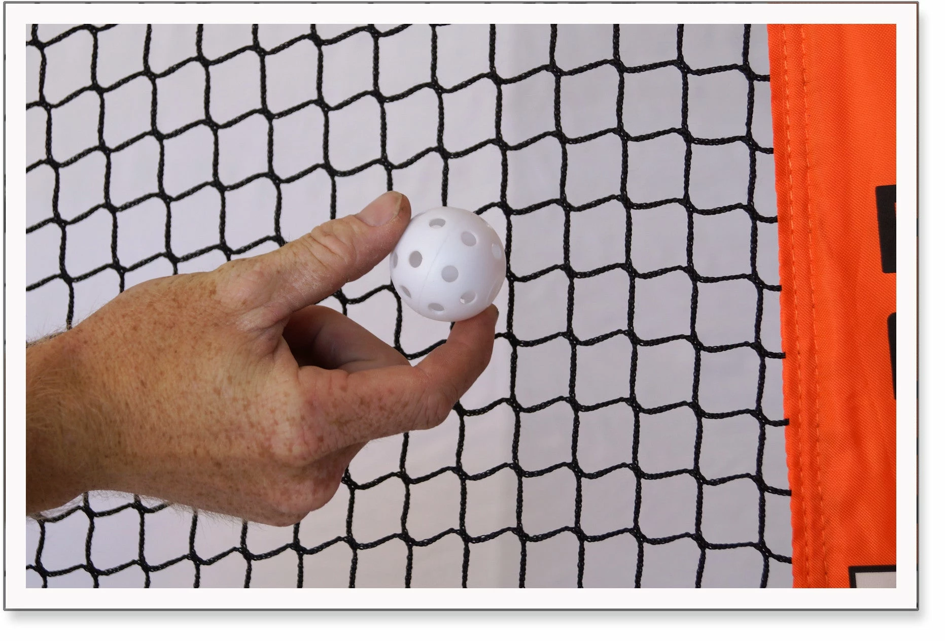- Resilient elastic netting accommodates Wiffle® sized baseballs, softballs, and golf balls