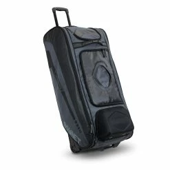 - Multiple accessory pockets, batting glove attachment panel, and removable shelving system.