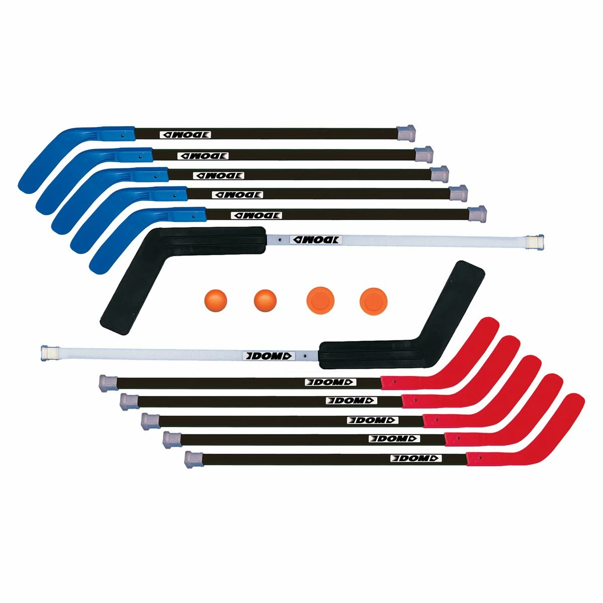 Ensemble de hockey qui comprend 10 bâtons, 2 bâtons de gardiens, 2 balles et 2 rondelles.