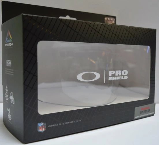 The Oakley Pro Football Shield raises the standard on fit and clarity and is most compatible with the Riddell Speedflex Helmet. The optically-correct shield has been engineered with freeform technology to match the unique curvature of Speedflex helmets and facemasks to help create and optimize fit.