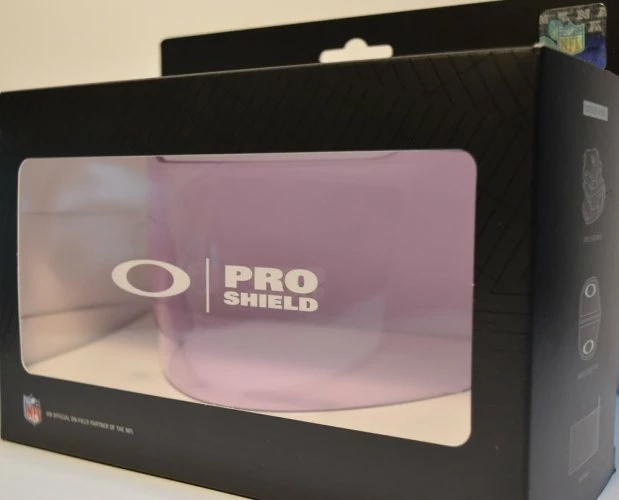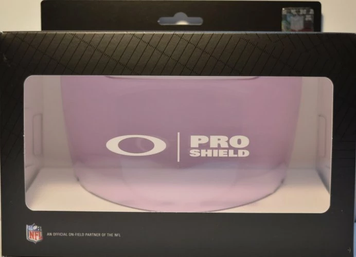 The Oakley Pro Football Shield raises the standard on fit and clarity and is most compatible with the Riddell Speedflex Helmet. The optically-correct shield has been engineered with freeform technology to match the unique curvature of Speedflex helmets and facemasks to help create and optimize fit.