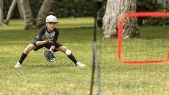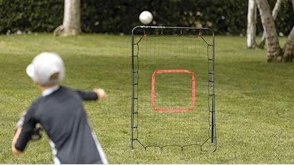 The SKLZ Pitchback Youth kicks back balls at a variety of angles for throwing, pitching, and fielding practice. Featuring a sturdy screen to simulate ground balls, line drives, and pop flies, the trainer also includes a strike zone target ribbon for pitchers. Ideal for players of all ages and skill levels, the Pitchback Youth is an ideal training aid for both solo practice and team play. Constructed with durable material, the baseball aid is built with a sturdy metal frame and tough netting that will withstand pitches season after season. Perfect for setting up at home in the backyard or garage, the lightweight trainer can also be packed up easily and used on the training field. The Pitchback Youth measures 2�9� wide by 4�8� tall and can be stored away easily when not in use.