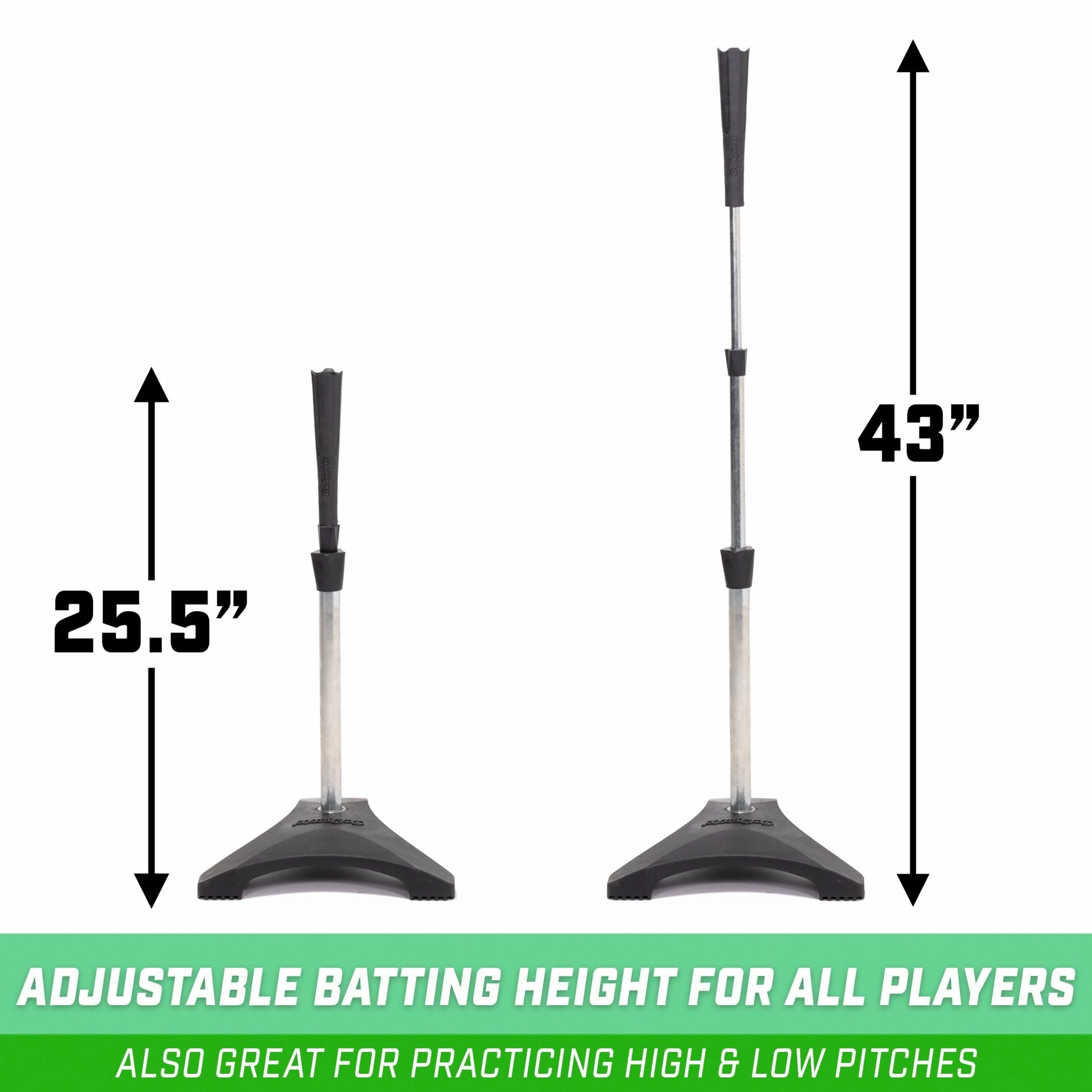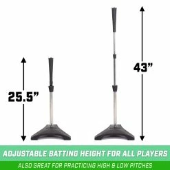 - ULTRA STABLE TELESCOPING TEE: Adjustable batting height ranges from 25.5 inches to 43 inches tall – great for practicing high and low pitches