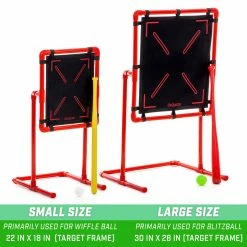 - EASILY CALL BALLS & STRIKES: No more disputes during games; Pitches that hit the main target or outer frame are strikes and pitches that miss the target or hit the legs are balls; Designed to be used with compatible balls such as Wiffle balls and Blitzball balls; Do not use with real baseballs