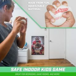 - INCLUDES STICKY SOFT BASEBALLS: Comes with 4 kid-friendly soft, sticky baseballs that splat and stick to the poster before falling down; Baseballs are safe for walls and doors and can be washed with water to restore stickiness after extended use