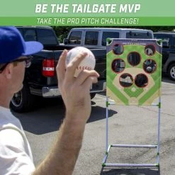 - PRO PITCH CHALLENGE: A brand new and exciting game for baseball fans of all ages! Full set includes 1 Pro Pitch Challenge target, 4 Inflatable Baseballs,1 Ball Pump, 1 Dry Erase Scoreboard and a portable Carry Case